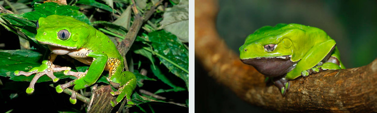 フタイロネコメガエル(二色猫目蛙、Phyllomedusa bicolor)は、アマガエル科ネコメガエル属に分類されるカエルで、別名ジャイアントネコメガエルと言います。