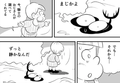 事情を聞くと、病気を治して奮闘してくれていたジャモ医師でしたが、悪人であることがわかり、男の子が頼んだ騎士2人も、その後ジャモ医院から出てこないので、殺されちゃったのかもしれないと心配している男の子でした。