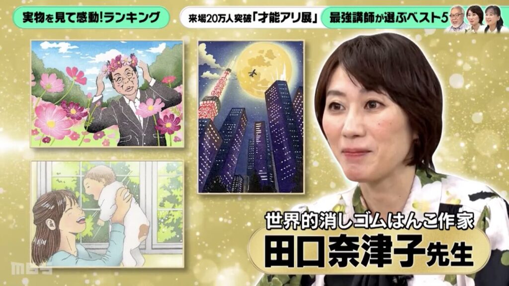 プレバト才能アリ展は、京都→東京→石川→福岡 と巡回して観客動員は20万人を突破しました。その14ジャンル217作品の中からベスト5を選出した3人の先生方です。