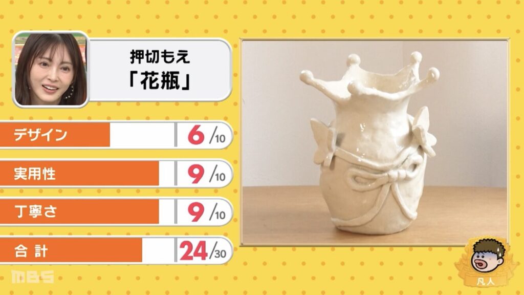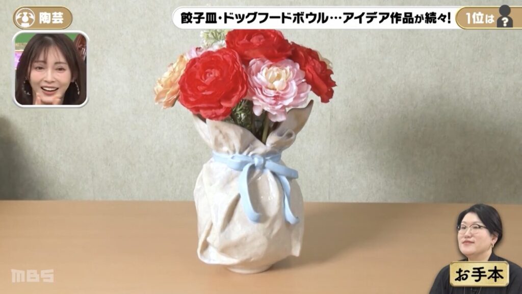とっても可愛い花瓶を作った押切もえさんですが、結果は3位で凡人でした。