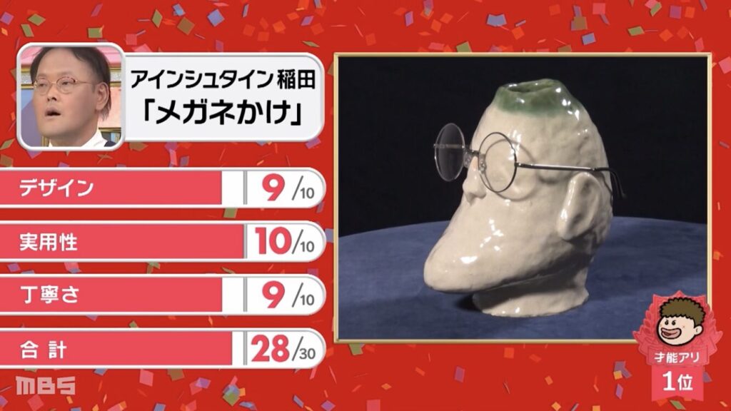 1位 アインシュタイン稲田さん「メガネかけ」28点 才能アリ