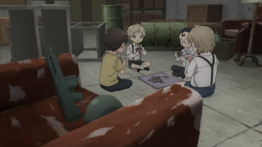 昔、陸軍が使っていた倉庫に、少年兵士たちは隠れ家として集まり、ゲームをしたりお菓子を食べたり、兵隊ごっこをしたりしていました。これは参謀(さんぼう)たちにとっての秘密基地ですよね?
