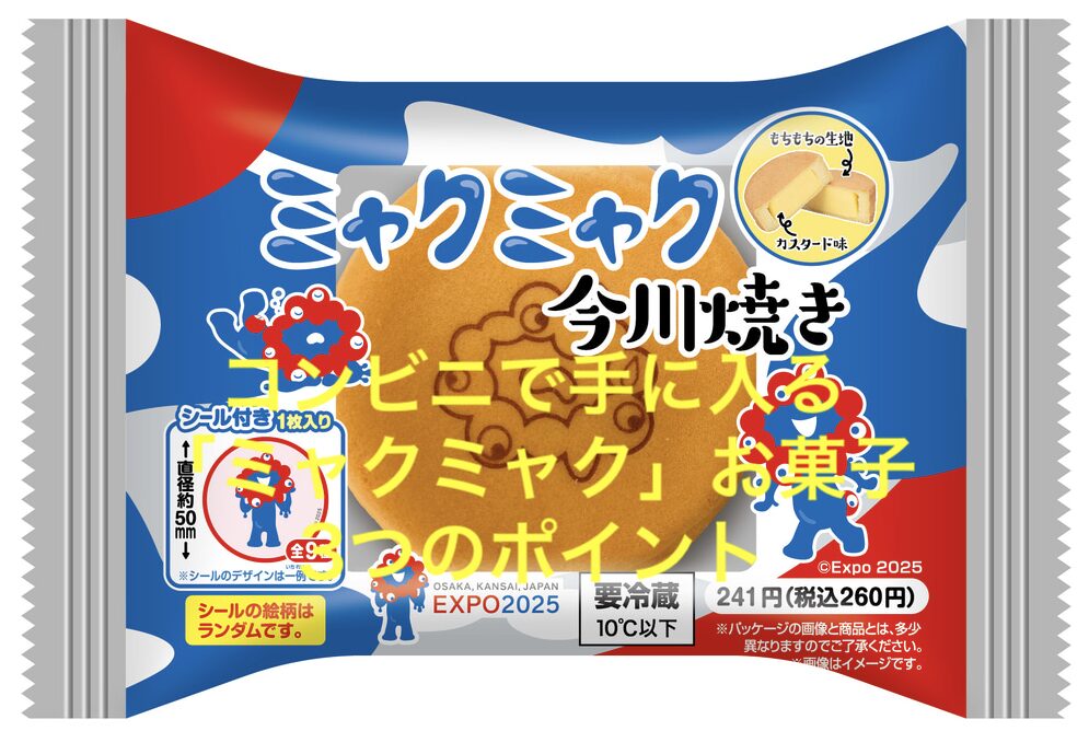 実際にミャクミャクデザインのお菓子・スイーツ類は発売されており、コンビニやスーパーでの取り扱い情報も出ています。