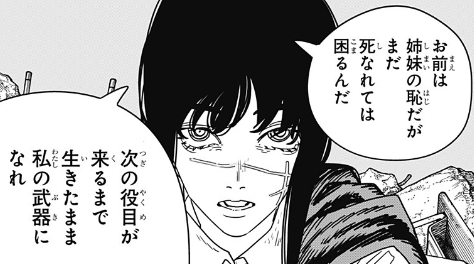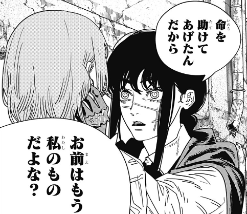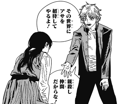 しかしデンジだって、恐ろしい悪魔「チェンソーマン」と体を共有しているし、お互い親を殺した仲間だから大丈夫だと言ったのです。