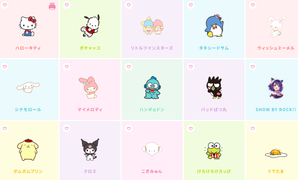 定番のキティーちゃんはもちろんのこと、マイメロやポムポムプリン、ポチャッコやばつ丸君まで、どれも人気があるキャラクターですね。