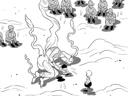 ポイーズの過去の出来事から、お話は現代へと戻ってきて、神の一族「メスヘル神」の最期を見届けるポイーズ・ボッジ・カゲ、そして村人たちやジャモ医師とランキング協会の審査員です。