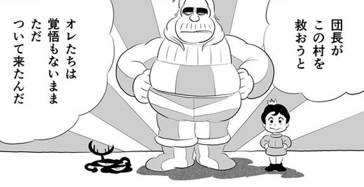 そして団長の頭を大切に持っていたカゲは、団長の頭部を出しながら、村の平和を望んでいた団長のことを話したのです。