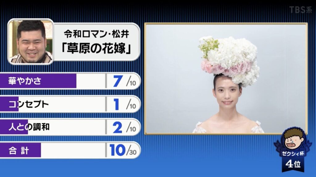 4位 松井さん(令和ロマン)「草原の花嫁」10点