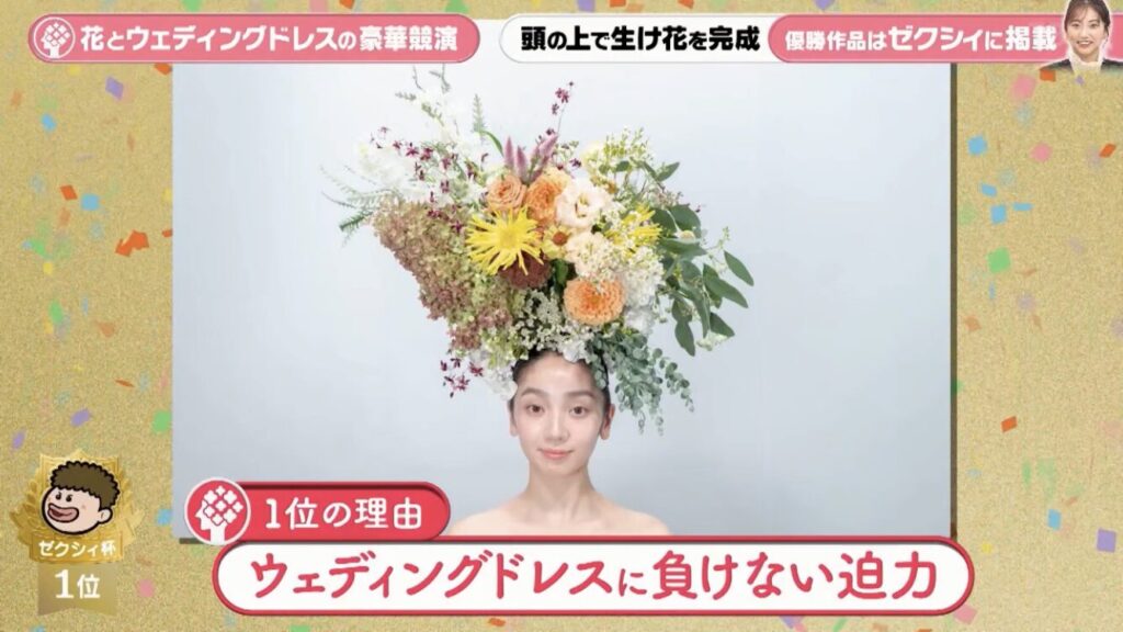11月13日のプレバトは2時間SPのヘアフラワーアートは「ゼクシィ杯」ということで、ウエディングドレスに似合うヘアフラワーアートで優勝すると、ゼクシィに掲載されます。