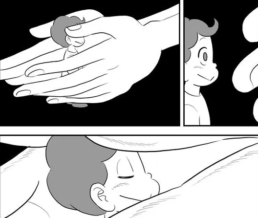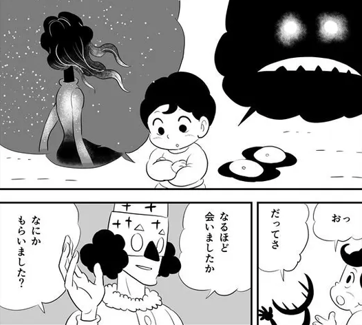 団長の体内は暗く、しかしボッジはとても落ち着いています。きっと団長のタマゴの母親が語りかけているのでしょう。