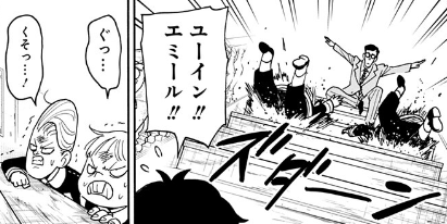 今度は、ダミアンの2人の子分が相手になりました。フォーメーションEの技で近づこうとしたけれど、チェスは何手も先を見る競技なので、先を読まれ階段から突き落とされてしまいました。