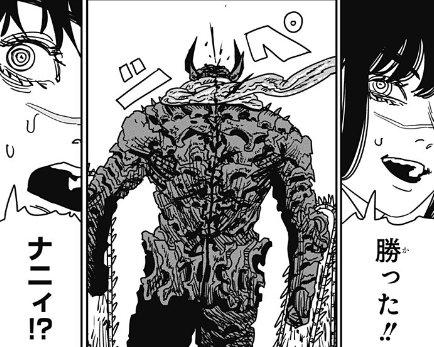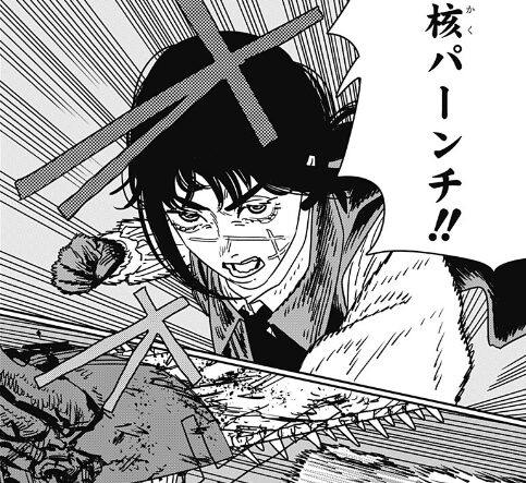 「核パーンチ‼︎」と、思いっきりチェンソーマンの顔面にクリーンヒットさせました。