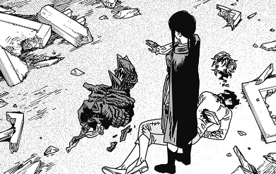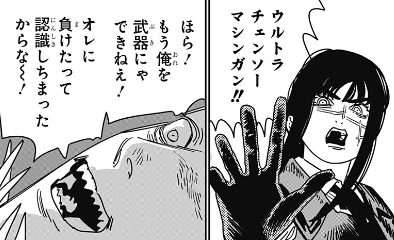 チェンソーマンは死の悪魔シーちゃんを食べた後だったので、シーちゃんの力をもらっていますね(笑)