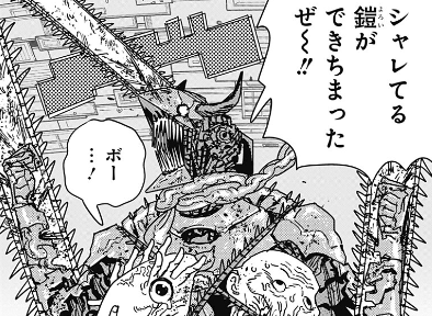 デンジーマンが身につけている鎧は、ヨルの悪魔仲間たちによって構成されているようで、デンジのお気に入りとなっています(笑)