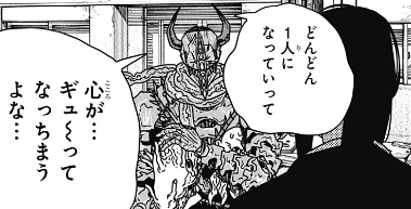 ヨルはヨルで後には引けずに、今まで犠牲となってくれた人々がいるので、なんとしてもチェンソーマンを倒して自分のいる世界を築こうとしています。悪魔が住みやすい世界を。