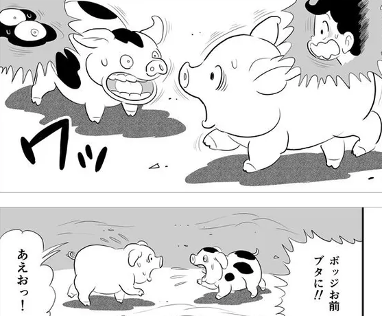 ボッジは白豚、カゲは牛柄(笑)特徴をとらえていますね。