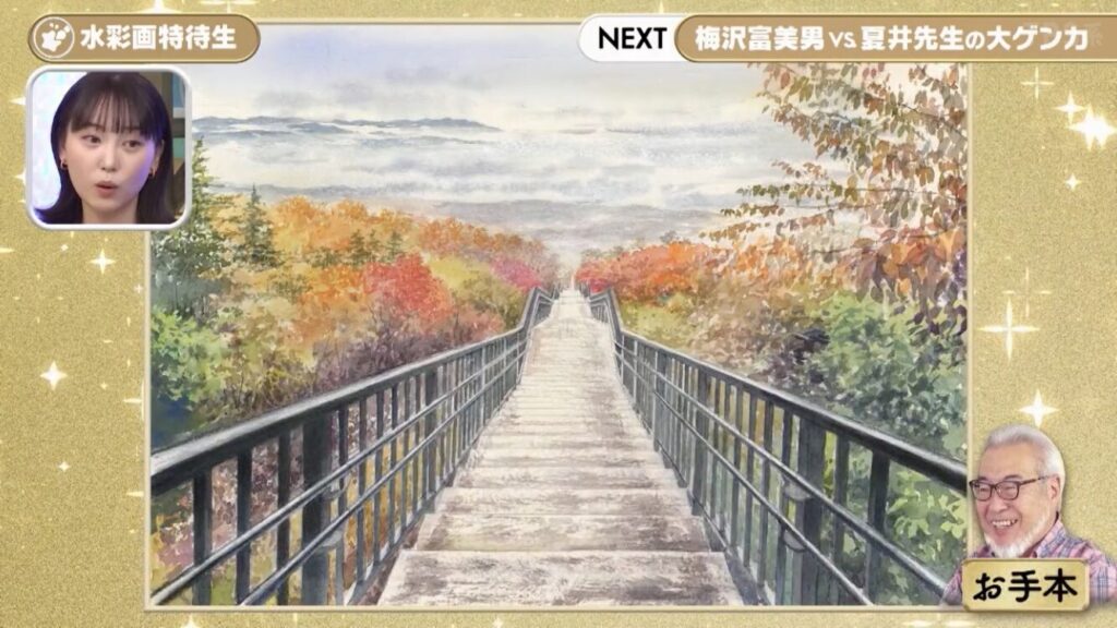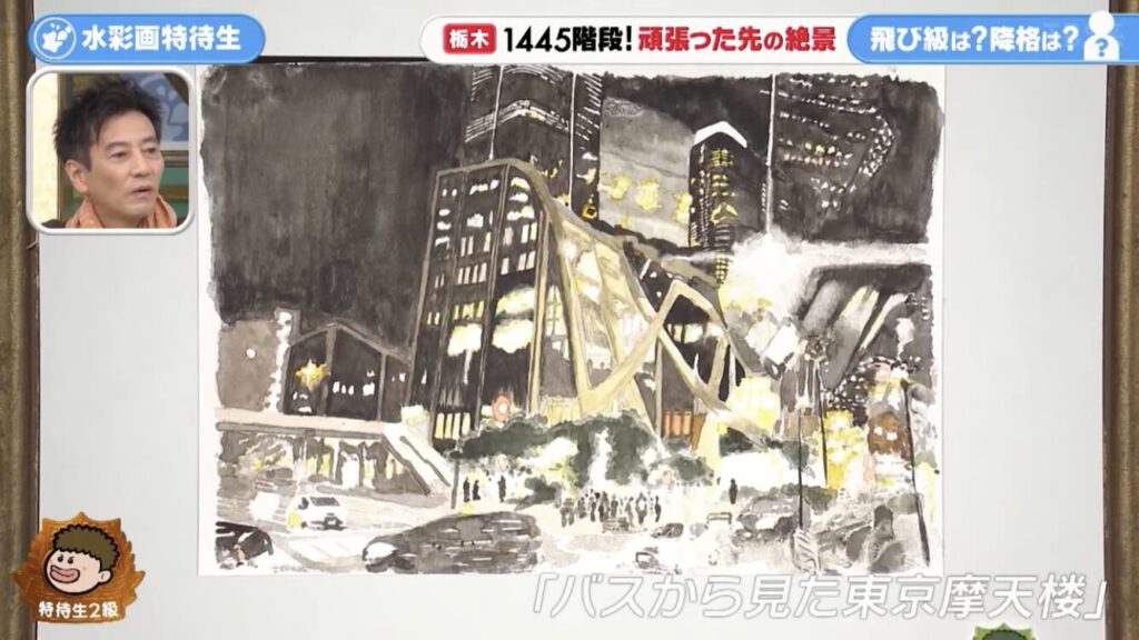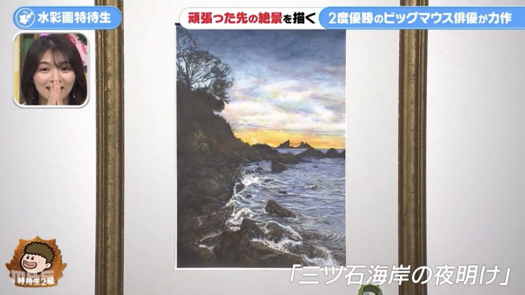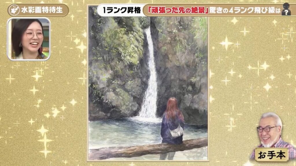 2025年10月30日放送の水彩画才能ランキングでは、名人5段の倉中るなさんがまさかの1ランク降格で、名人4段になってしまいました。