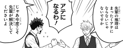 口では脅すようなことを言っているけれど、レノはカフカ先輩命の男なので、日比野探偵事務所から移籍することはないでしょう。
