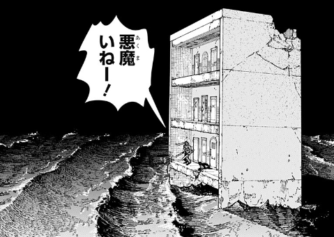 デンジは地獄へ行くと、教室の天井にあるドアの入口から、悪魔のいる地獄へと侵入したのですが、そこには悪魔らしきものは誰もいませんでした。