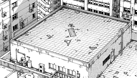 デンジとヨルは、教室の天井にあるドアの入口から、悪魔のいる地獄へと侵入するのでした。