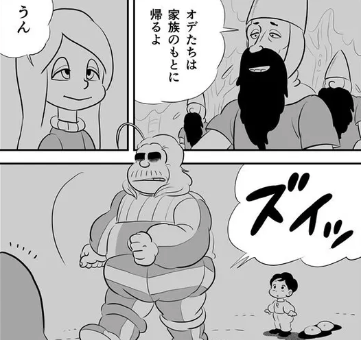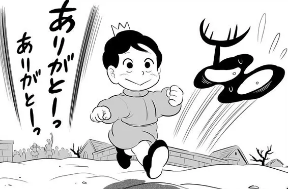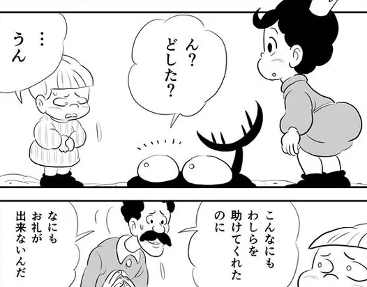 一部始終を見ていた男の子は、村人たちと一緒に2人にお礼を言いにきました。