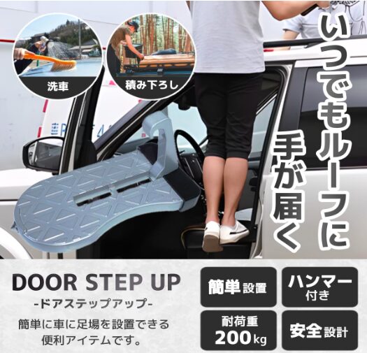 そんな時に便利なのが、車のドアに引っ掛けて使える「ドアステップ 踏み台」です。