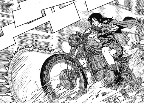 ヨルはチェンソーバイクでデンジを追いかけ、トドメを刺そうとしています。