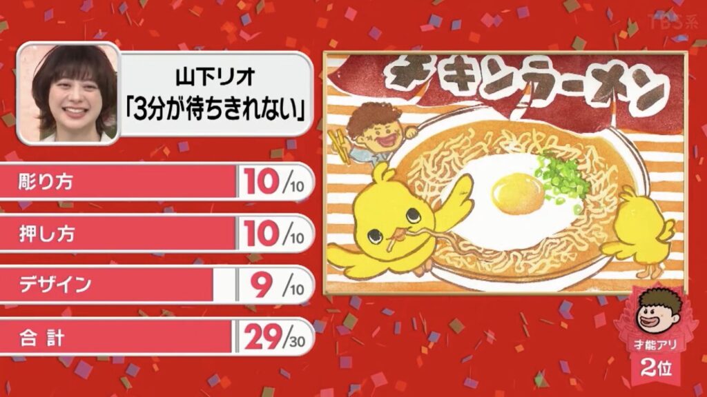 2位 山下リオさん「3分が待ちきれない」29点 才能アリ 特待生