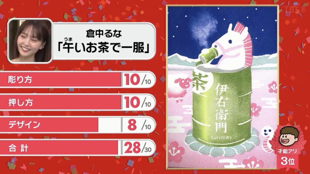 3位 倉中るなさん「午いお茶で一服」28点 才能アリ