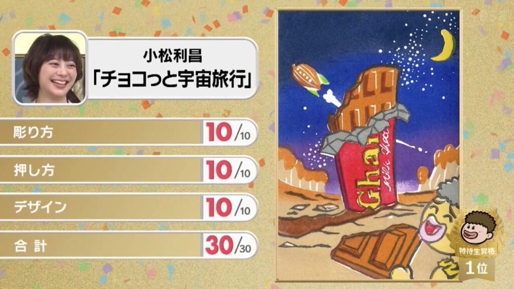 1位 小松利昌さん「チョコっと宇宙旅行」30点 才能アリ 特待生