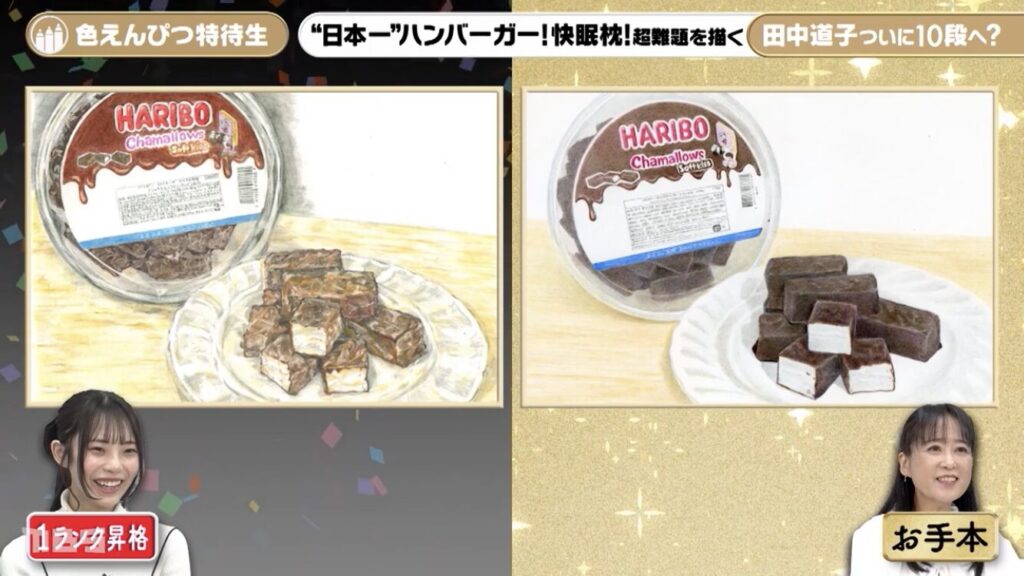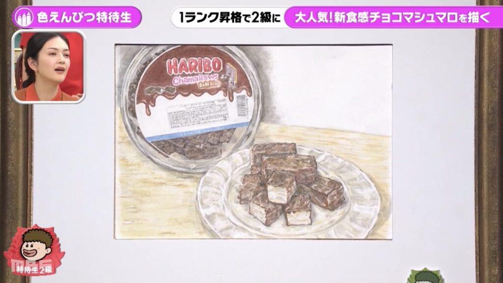 non-noの専属モデルである菊地姫奈さんは、ハリボーのチョコマシュマロを描いて1ランク昇格で、特待生2級になりました。