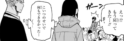 3人は行動に移せなくて、悶々としています。もし3人がよーいスタート!で敵を倒すとしたら秒速の速さでしょうね。
