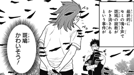 ハクアが最近、斑鳩に叱られていましたが、その時セミがハクアの肩に止まり鳴き始めたので、斑鳩の説教がかき消されたそうです。