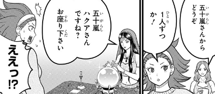 まずはハクアが呼ばれましたが、フルネームを言われて名前を当てられたとビックリするハクアです。事前に名前は聞いていたと占い師さん(笑)