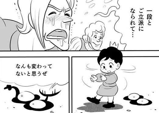 カゲも照れくさいのか、謙遜しながら返事を(笑)ドーマスが泣きながらボッジの成長を語ると、なにも変わっていないと正直な気持ちを口にするカゲ。