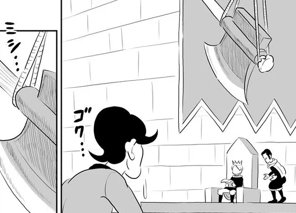 不審な人物、または自分に危害を加える人物が面会に来た時に、巨大の斧が落ちる仕掛けになっているのは?と思ってしまいましたが、実際はどんな意味があるのでしょうか?