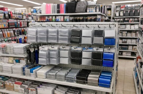 店舗によっては、名刺入れがビジネス用品や事務用品コーナーに置かれていることもあります。