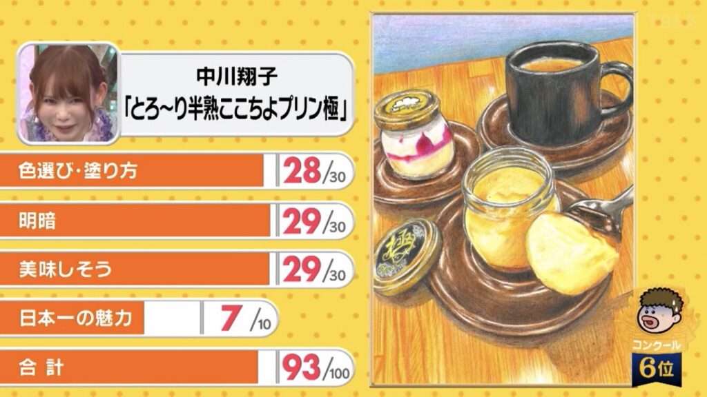 6位 中川翔子さん「とろ〜り半熟ここちよプリン極」93点
