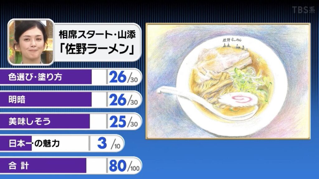 8位 山添寛さん(相席スタート)「佐野ラーメン」80点 最下位