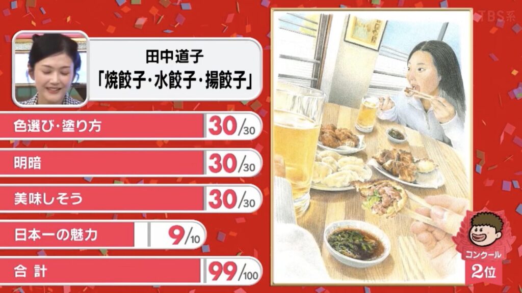 2位 田中道子さん「焼餃子・水餃子・揚餃子」99点