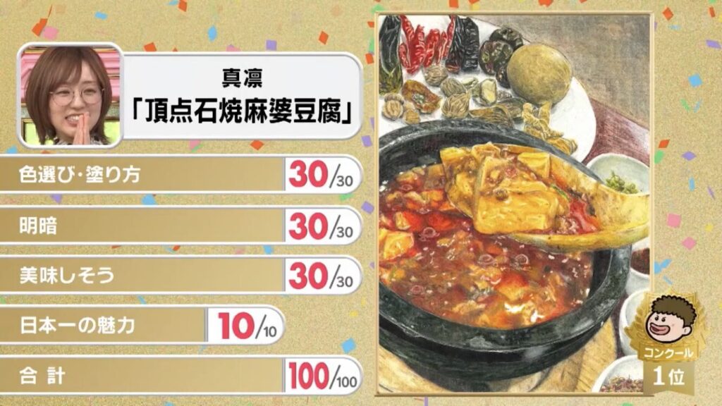 1位 真凜さん「頂点石焼麻婆豆腐」100点