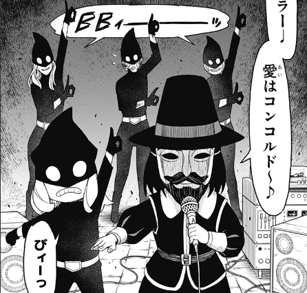なんか仮面かぶって、忍者のような手品師のようなペテン師のような身なりですよね〜〜