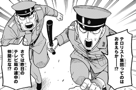 それも、昨日テレビ局で大暴れしたテロリスト集団の一身に間違われています(笑)