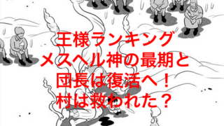 王様ランキング 王様ランキング漫画最新話273考察・メスヘル神の最期と団長は復活へ!村は救われた? ポイーズの過去の出来事から、お話は現代へと戻ってきて、神の一族「メスヘル神」の最期を見届けるポイーズ・ボッジ・カゲ、そして村人たちやジャモ医師とランキング協会の審査員です。現代の前回のお話は、こちらを読んでみてくださいね↓⇒ 王様ランキング... 2025.11.08 王様ランキング
