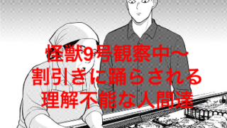 怪獣8号 怪獣8号リラックス19話後編・怪獣9号観察中〜割引きに踊らされる理解不能な人間達 今回は、日本防衛隊の敵である怪獣9号についてのお話です。彼は怪獣にしては知能が発達していて、まずは自分が人間の生活環境に溶け込んで、人間の思考を理解するところから始めているようです。しかし怪獣には理解できないような、感情や欲を持つ人間の心理... 2025.12.19 怪獣8号