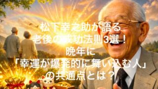 心理学 松下幸之助が語る老後の成功法則3選!晩年に「幸運が爆発的に舞い込む人」の共通点とは? 松下幸之助が晩年に語った「老後に幸運を呼び込む3つの法則」を紹介。成功体験を手放す勇気、感謝と謙虚さ、徳を積む生き方が、人生の最期に微笑みをもたらす鍵となります。 2026.01.20 心理学