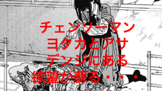 チェンソーマン チェンソーマン2部229話考察感想・ヨタカとアサ、そしてデンジにある欲望が蘇る・・・ ヨルに猛攻撃され、デンジーマンの体は細かく砕けていきましたが、ヨルはバイクでデンジーマンへと突っ込む手前で、目の前にいる鳩を避け、壁に激突して負傷しました。アサに鳩を避けた理由を問われると、「鳥を殺すとアサが嫌な気分になるから」とヨルは、コ... 2026.02.18 チェンソーマン