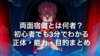 呪術廻戦 両面宿儺とは何者?初心者でも3分でわかる正体・能力・目的まとめ 両面宿儺とは何者なのかを初心者向けに徹底解説。千年前の最強呪術師という正体、呪いの王と呼ばれる強さの理由、術式・領域展開、虎杖や伏黒との関係、完全復活の目的までを3分でわかりやすくまとめています。 2026.02.22 呪術廻戦
