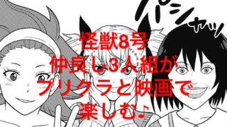 怪獣8号 怪獣8号リラックス22話後編・仲良し3人組がプリクラと映画で楽しむ♪ 日本防衛隊第3部隊の新人、仲良し3人組の女の子たちが亜白ミナ隊長おすすめの映画を観に来ています。前回話題になったハクア、一番落ち着いているあかり、そして女の子らしいことが苦手なキコルです。プリクラ撮ったり映画を観たりと、仲良し3人組はとって... 2026.03.21 怪獣8号