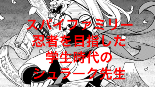 SPY×FAMILY スパイファミリー番外編18話感想・忍者を目指した学生時代のシュラーク先生 アーニャやダミアンたちの活躍で、担任のヘンダーソン先生の辞職はなくなり、またイーデン校のトニト(雷)おばさんと恐れられているシュラーク先生の活躍もあって、無事裏口入学事件も解決しました。⇒ スパイファミリー127話前編感想・旧校舎でシュラー... 2026.01.19 SPY×FAMILY